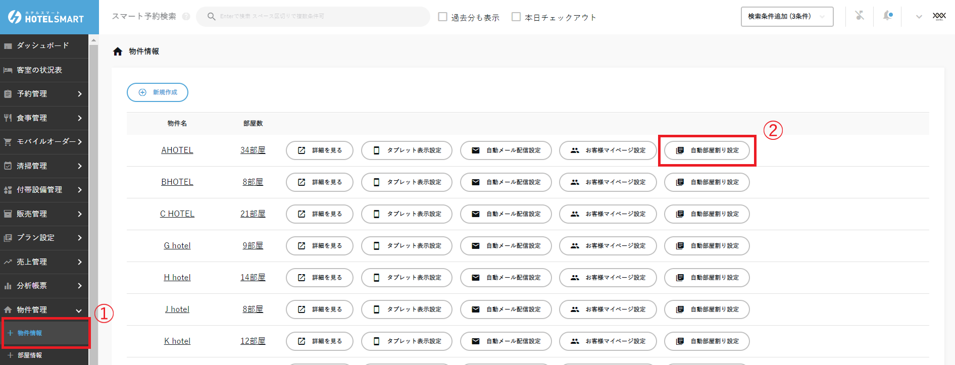 物件情報>物件管理>自動部屋割り設定 より設定を行います。