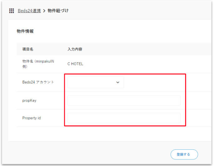 propKey:Beds24の1プロパティに対して1つ発行されるキー