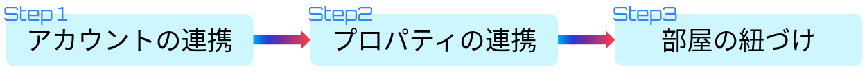 ②物件紐づけページへ入ったら、アカウントを選択の上、”propKey”と”Property id”を入力