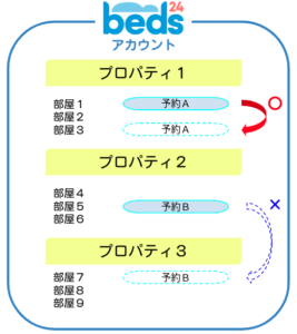 Beds24上で部屋の割り当て変更があった場合は反映される?