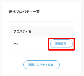 右下の連携プロパティ一覧にある【連携解除】ボタンをクリックすることで連携を解除できます。