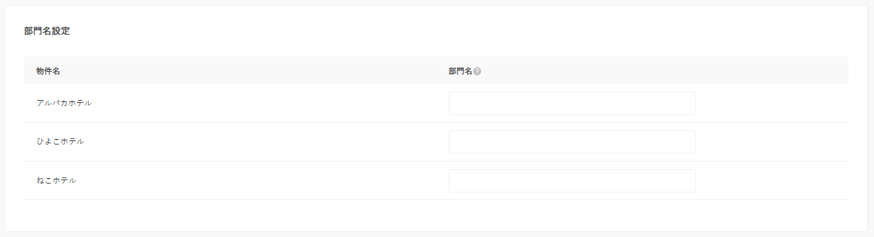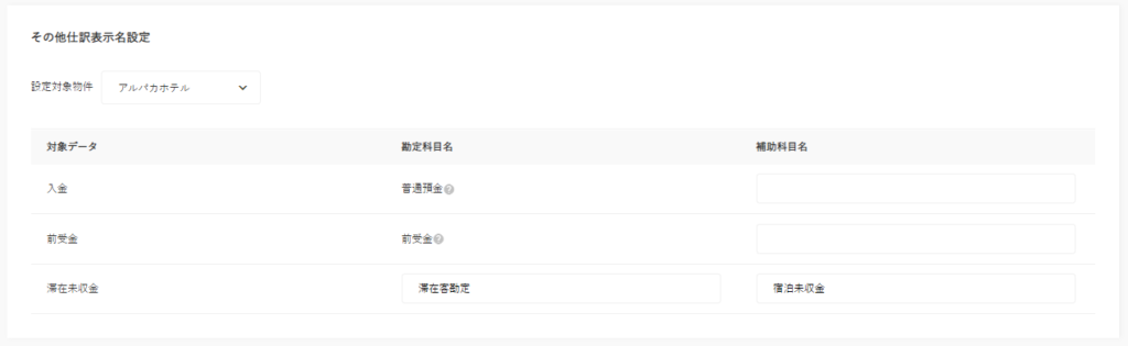 物件ごとに、入金、前受金、滞在未収金の勘定科目名と補助科目名の設定を行います。