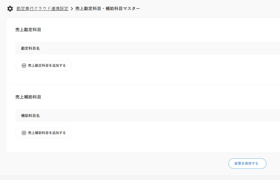 2.【売上勘定科目】欄にて、「⊕売上勘定科目を追加する」をクリックし、勘定科目名を入力