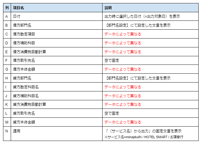 以下のデータの中で、計上日が出力対象日になっているデータを仕訳した帳票が出力されます。