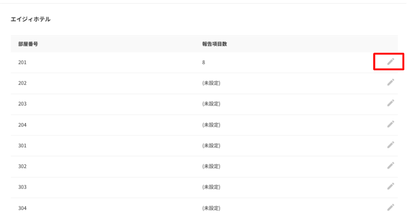 ②部屋一覧が表示されるので、設定する部屋の鉛筆マークをクリックします。