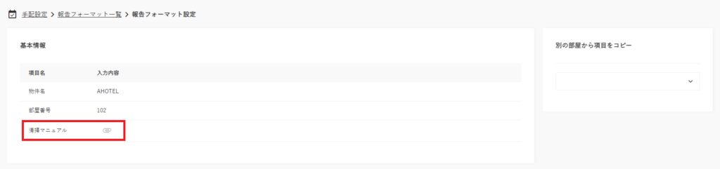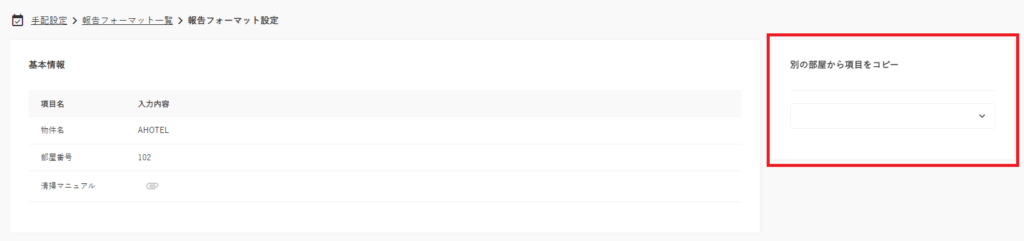 複数部屋で報告内容が同じである場合は、右側の「別の部屋から項目をコピー」よりコピーしていただけます。