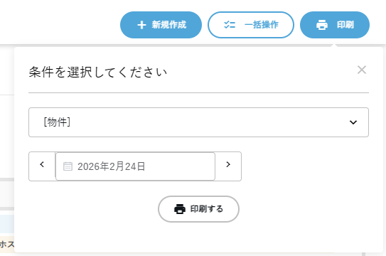 印刷したい物件名と日付を選択し、「印刷する」ボタンを押します。