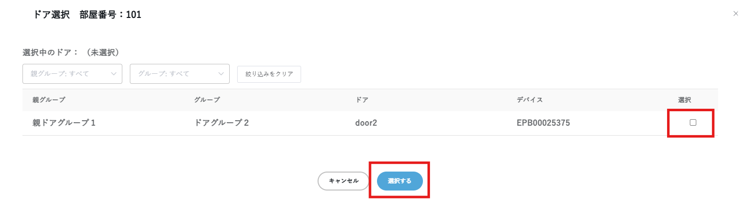 ③連携したいドアにチェックを入れ、「選択する」をクリックします