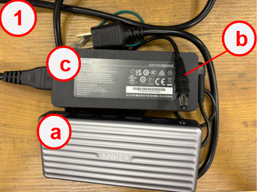 - ⓐハブ・ⓑアダプタ・ⓒ電源ケーブルを接続