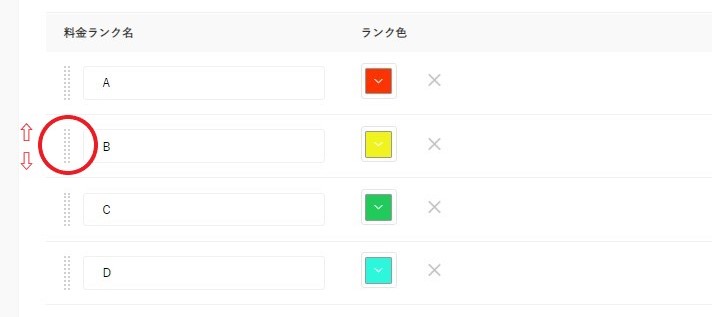 料金ランク名の左にあるバーをつかみながら上下に動かすことで、料金ランクの順番を変えることができます。