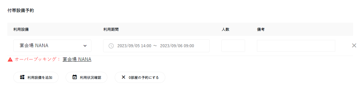 他の予約で追加している付帯設備と時間が被っている場合には、