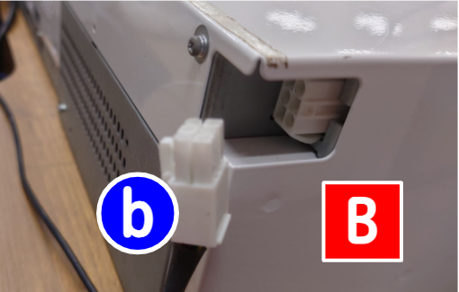 ①コンバータ(A)から出ている電源コード(a)のプラグをコンセントに差し込みます