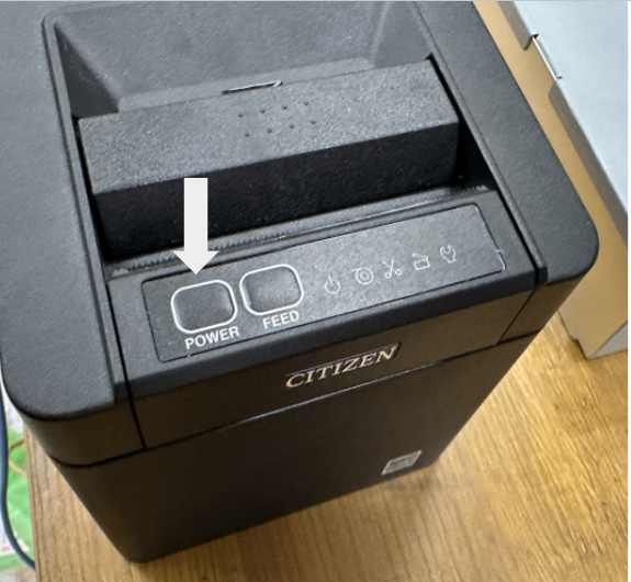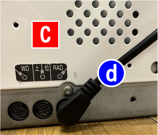 硬貨釣銭機(C)とプリンタ(D)のそれぞれの電源ボタンを長押ししてONにします。