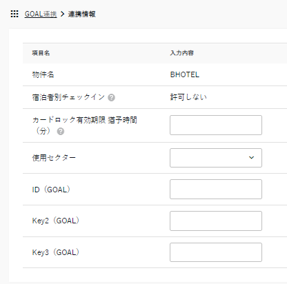 現場仕様に記載のIDを入力してください。 - Key2(GOAL)