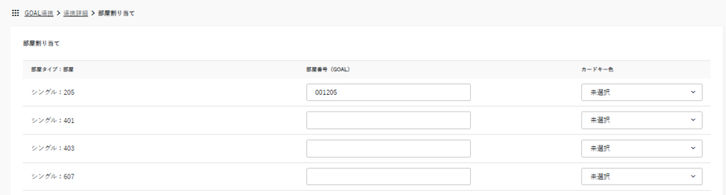 ②部屋番号(GOAL)とその部屋で利用するカードキーの色を選択し保存
