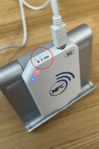 カード発行機から「ピッ」と音が鳴り、タブレットの言語選択ページの右下に写真のようなアイコンが表示されたら連携完了です。