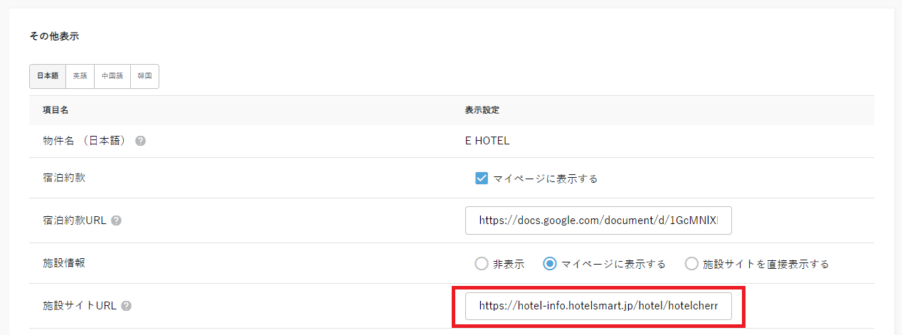 宿泊者様用の施設案内サイトのURLの最後の部分を自由にご変更いただけます。