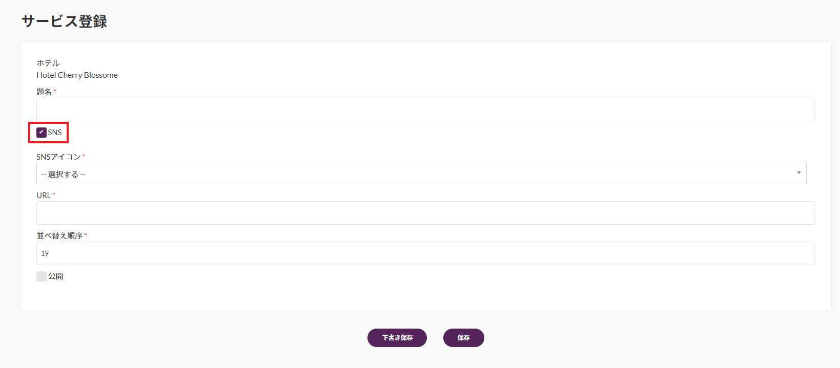 サービス登録ぺージにてSNSにチェック✓を入れると、SNSリンクの設定が出来ます。