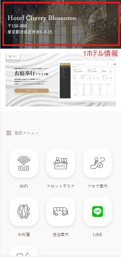 宿泊者様用のURL(https://hotel-info.hotelsmart.jp/hotel/スラッグ/)
