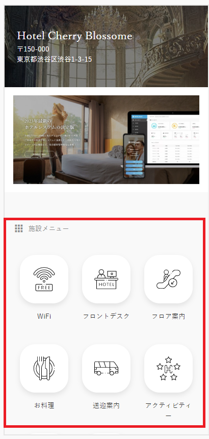 宿泊者様はサイトのトップページに表示されたアイコンメニューから