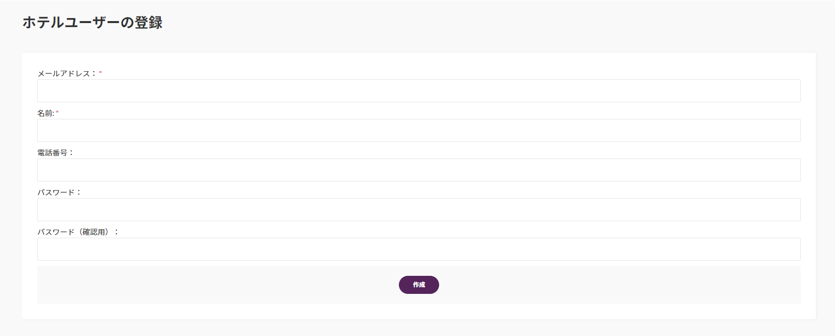 ホテルユーザー管理では、管理画面にログインできるユーザーの登録や削除が可能です。