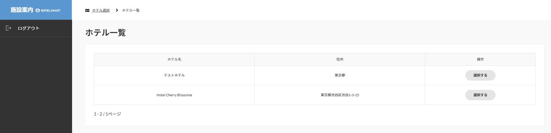 複数ホテルを編集できるユーザーの場合は、ログイン後にホテルを選択します。