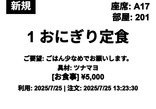 キッチンプリンター連携では、モバイルオーダーで受けた注文内容をキッチンプリンターで自動印刷する機能です。