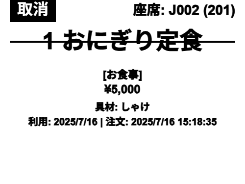 【取消】で数量・商品名に取り消し線が入った状態で印刷されます。