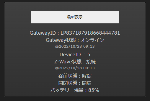 開いたページで、ゲートウェイID(GatewayID)とデバイスID(DeviceID)が確認できます。