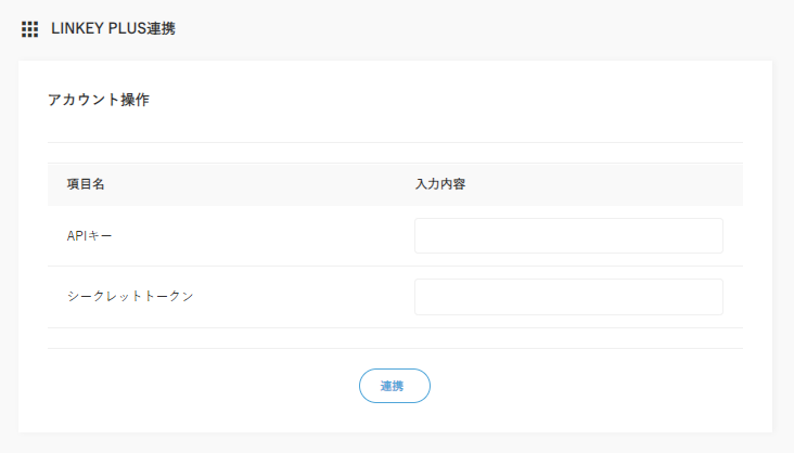 ②発行されたAPIキー・シークレットトークンを入力して「連携」をクリック