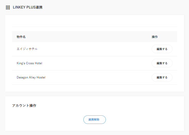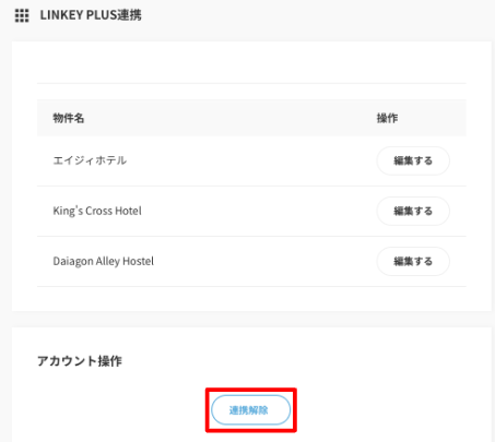 アカウント情報の【連携解除】ボタンをクリックすると連携が解除されます。
