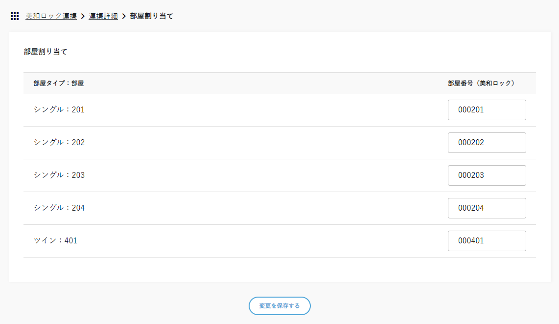 カードキーとHOTEL SMART上の部屋の紐づけを行います。