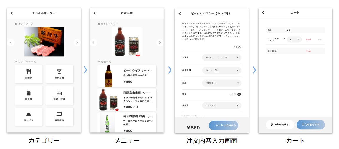 モバイルオーダーは、マイページ上で商品を販売し、チェックイン前および宿泊期間中に注文いただける機能です。