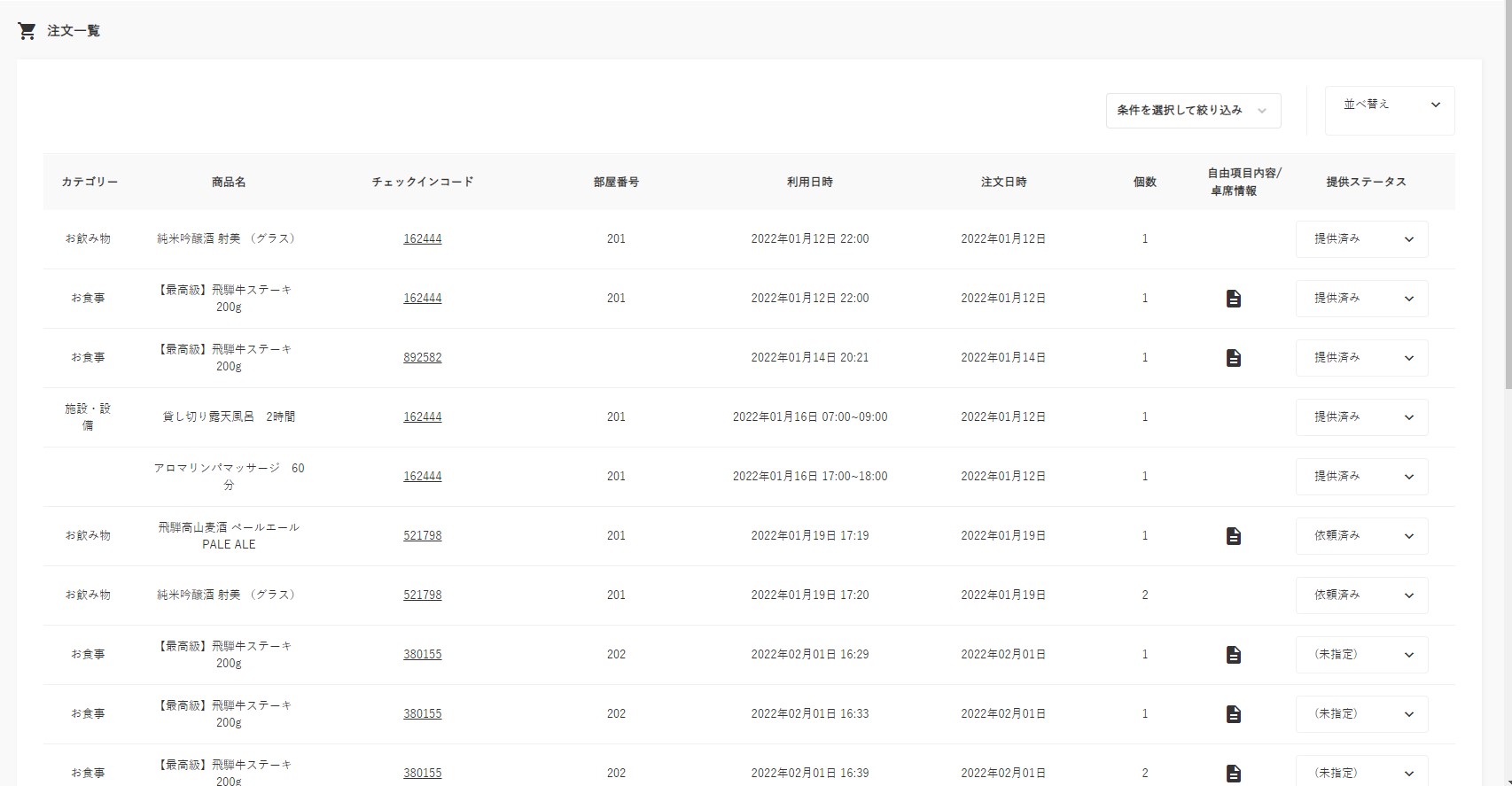 ルームオーダー、レストラン注文、施設設備の利用申し込みなど、様々な用途でご利用いただけます。