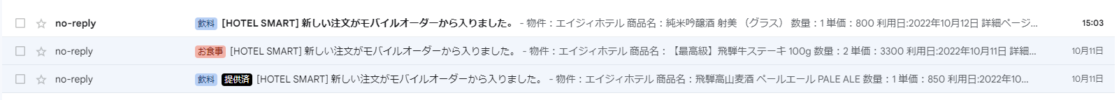 モバイルオーダーの注文通知メールを設定すると、注文の度にメールを受信することが可能です。