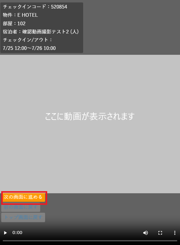 ②動画を確認し、「次の画面に進める」「前の画面に戻す」「トップ画面に戻す」より選択する