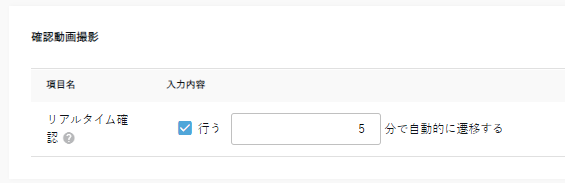 撮影した動画を確認したうえでチェックインを完了させる必要がある場合、[リアルタイム確認]の設定を行います。
