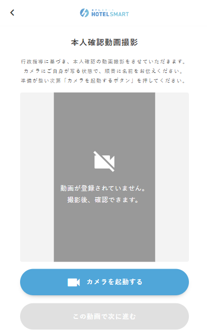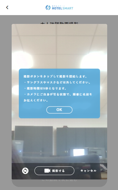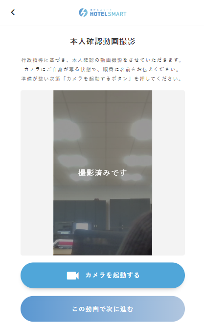 動画撮影は宿泊者情報の登録後(チェックイン完了前)に行われます。