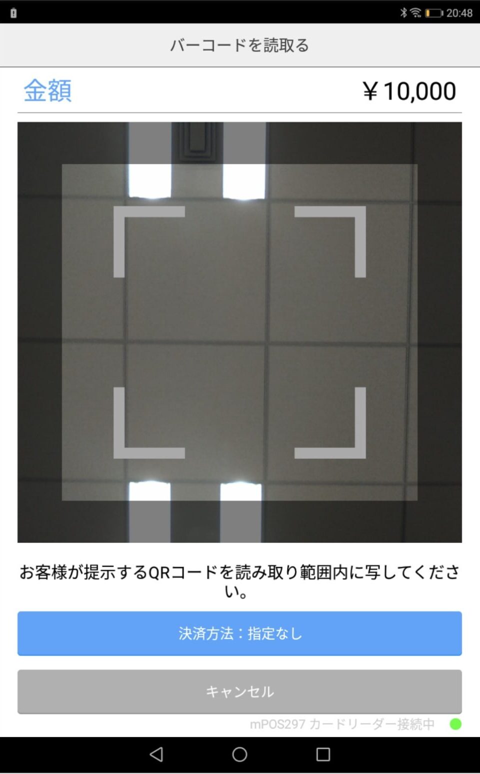 ※設定でQRコード決済を無効にしている場合、QRコードの選択肢は表示されません
