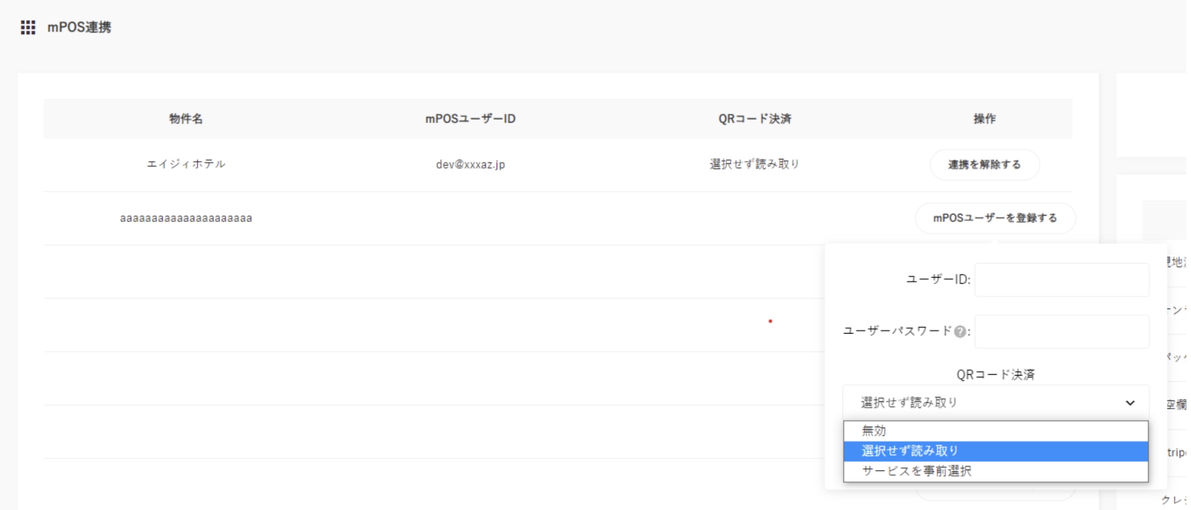 マルチ決済サービスmPOSと連携することで、タブレットでのチェックイン・アウト時に宿泊料金やオプションで購入した商品を、クレジットカードまたはQRコードでお支払いいただけます。