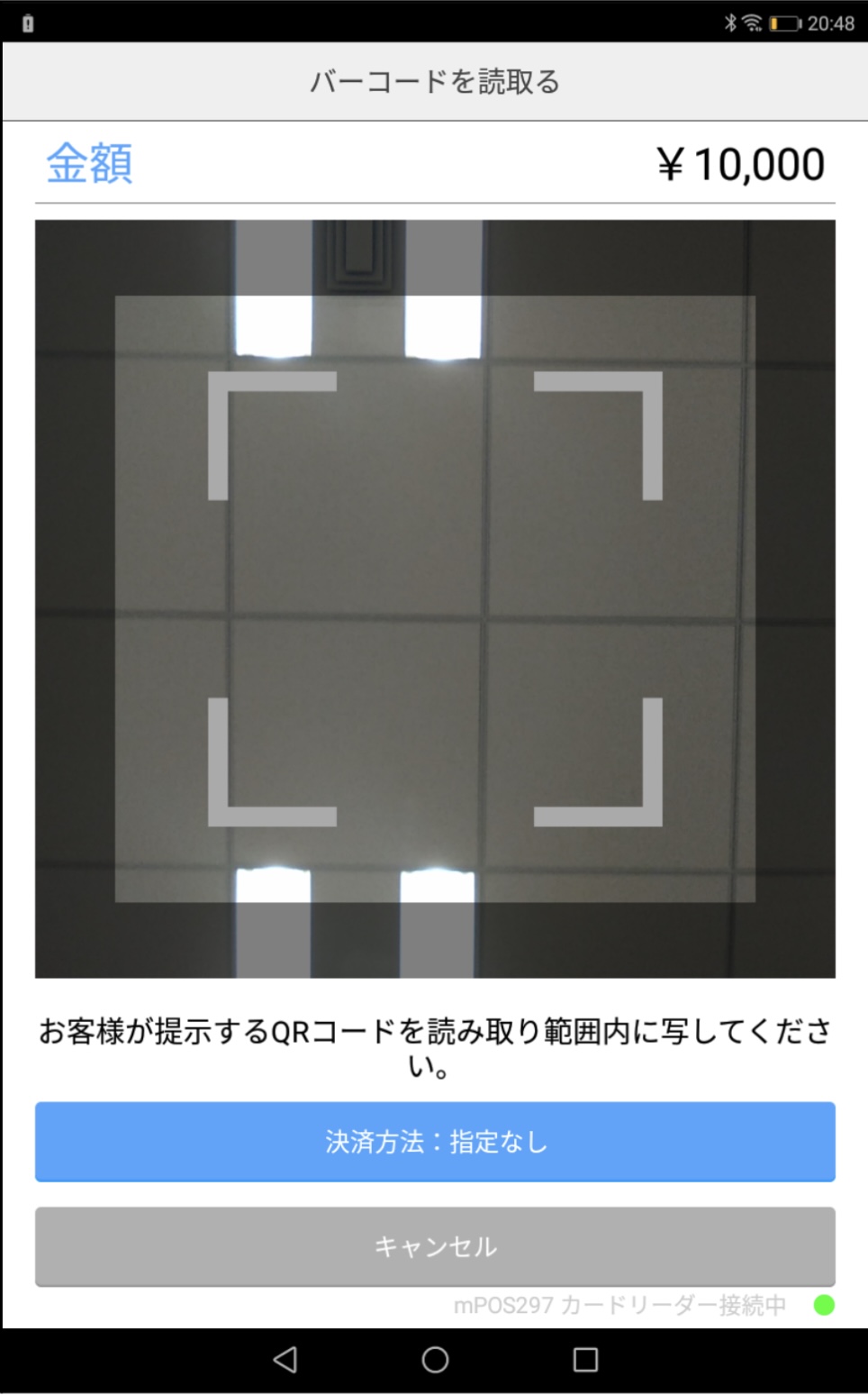 3.バーコード読み取り画面がでるので、タブレット端末の内カメラで読み取ります