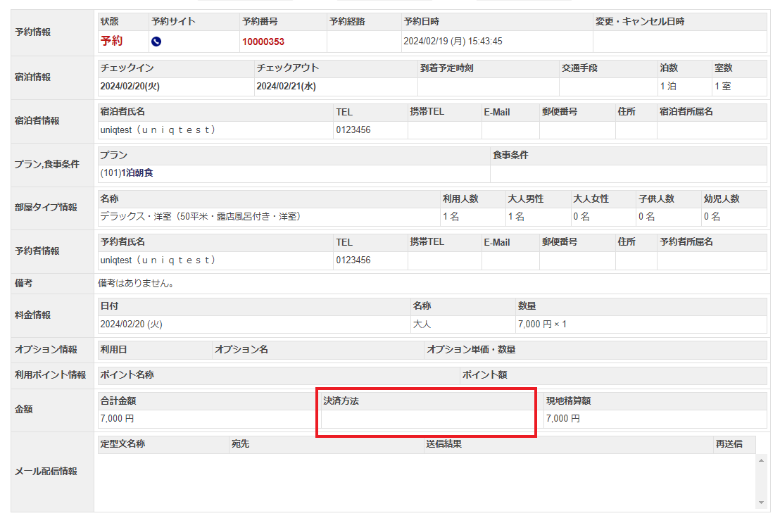 mPOSから返金を行っても、minpakuIN / HOTEL SMART / お宿奉行の料金情報欄には反映されません。