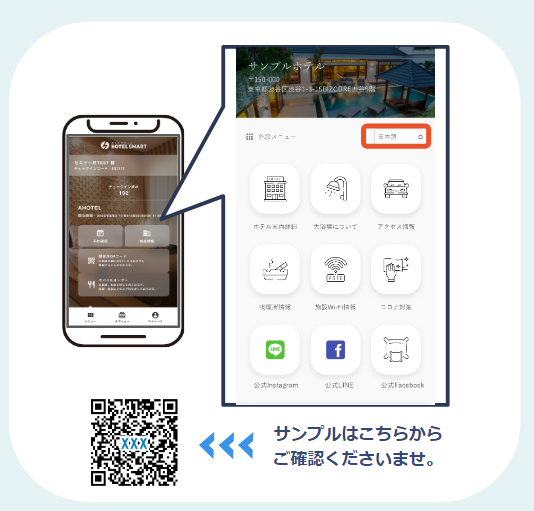 トップページを QRコード化していただき、客室や館内に掲示いただくこともお勧めです◎
