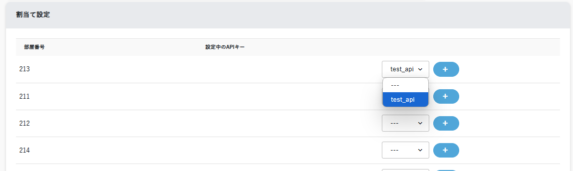 ①プルダウンより紐づけたい鍵のAPI専有部識別キー(APIキー)を選択