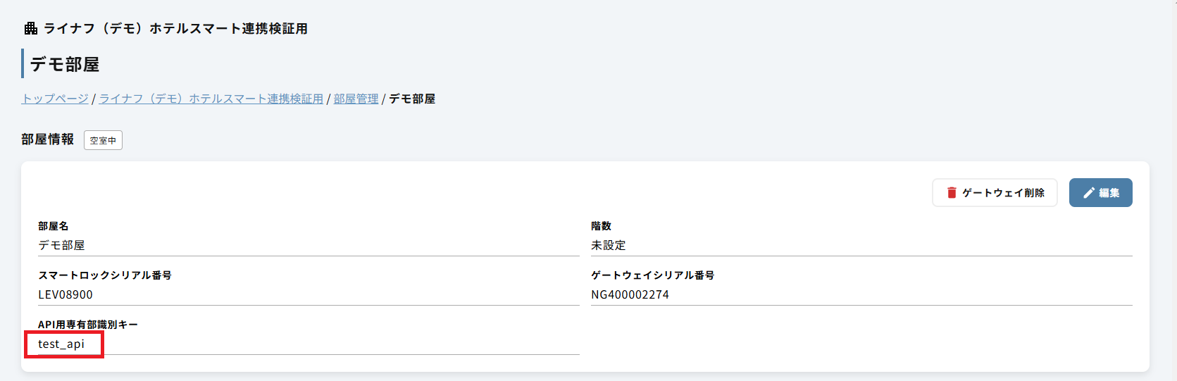 登録が完了すると、〖登録済みAPI専有部識別キー〗に表示されます。