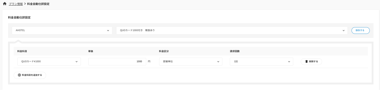 プラン料金の内訳情報を自動作成をするための設定です。