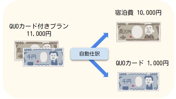 11,000円のご宿泊代は、宿泊費10,000円とQUOカード1,000円に自動仕訳されます。