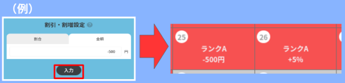 日付に設定された料金ランクの金額から割増する場合は正数、割引する場合は負数で入力します。