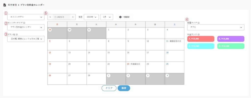 プラン別料金カレンダーで、料金ランクをベースに細かい料金設定をできる機能です。