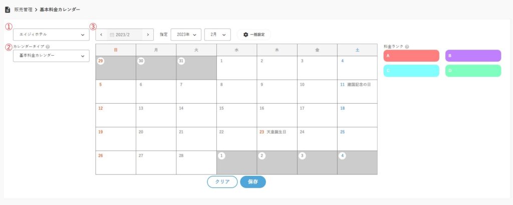 まずは基本料金カレンダーで基本となるランク設定を行い、